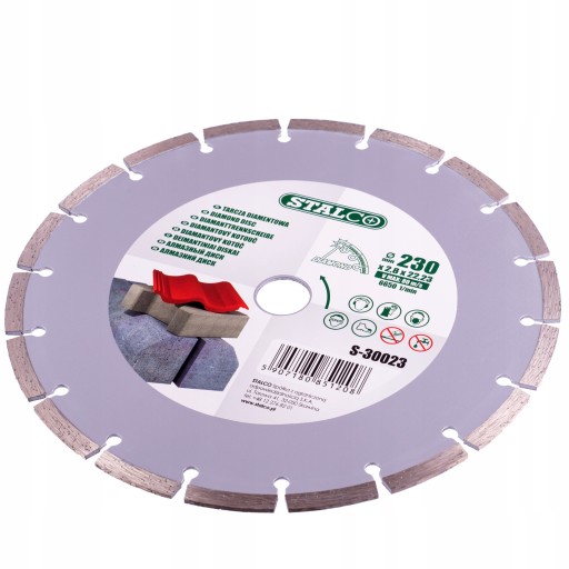 - ✅Tarcza diamentowa segmentowa 230mm znakomicie sprawdza się w różnorodnych zadaniach budowlanych i remontowych, gdzie wymagane jest precyzyjne i skuteczne cięcie twardych materiałów.