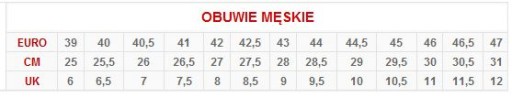 Długości wkładek podawane są według tabeli rozmiarów producenta.