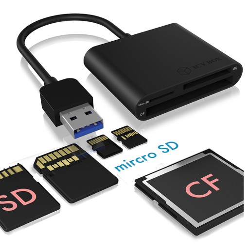 Szybki czytnik ICY BOX USB 3.0 - CF, SD, microSD