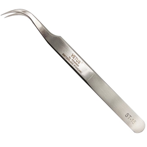 Pinceta Vetus ST-15 wygięta do przedłużania rzęs - wykonana z wysokiej jakości nadtwardych i niemagnetycznych materiałów. Bardzo wygodna w użyciu, stosowana do przedłużania zarówno pęczków, jak i pojedynczych rzęs.