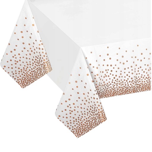 OBRUS PLASTIKOWY BIAŁY W MIEDZIANE KROPKI