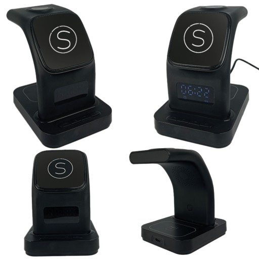 - Dodatkowe funkcje: Zegar z budzikiem, lampka nocna, możliwość ładowania 3 urządzeń jednocześnie