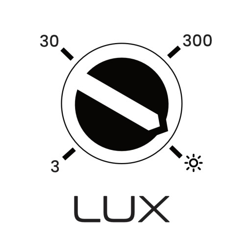 - Regulacja czułości czujnika światła 'LUX: tak; <3 - 2000 lux