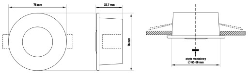 - Średnica otworu montażowego: Ø63 - 66 mm
