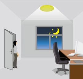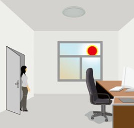 Przy intensywnym oświetleniu większym niż próg światła dzienne, czujnik nie załączy lampy, gdy ktoś wchodzi do pomieszczenia.