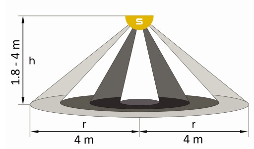 - Zasięg detekcji: maks. 4 m (promień)
