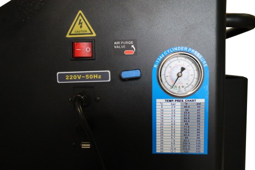 - Czytelne manometry wskazujące ciśnienie HP i LP oraz ciśnienie w zbiornikach.