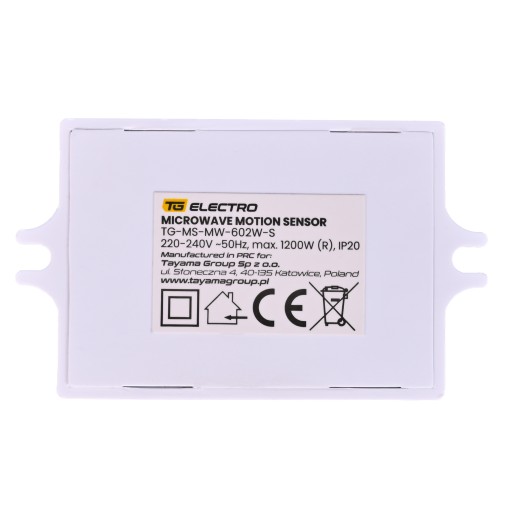Czujnik dedykowany do montażu jako układ sterujący urządzeniami o charakterze indukcyjnym (np. oświetlenie LED) oraz rezystancyjnym, zasilanych napięciem AC 230 V 50Hz. Czujnik umożliwia również sterowanie urządzeniami w zależności od wybranego poziomu światła otoczenia.