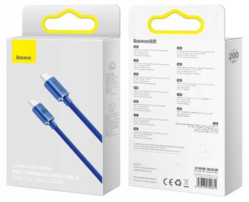 - Model: Crystal Shine Series Fast Charging Data Cable Type-C to Type-C 100W 2m Blue