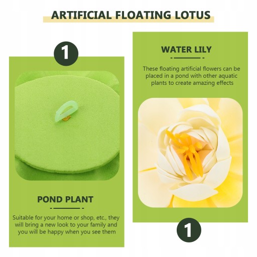 Te pływające sztuczne kwiaty można umieścić w stawie z innymi roślinami wodnymi, aby uzyskać niesamowite efekty.