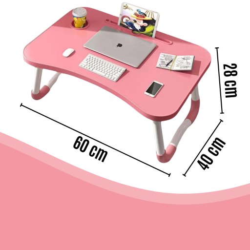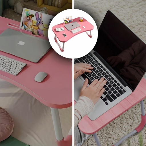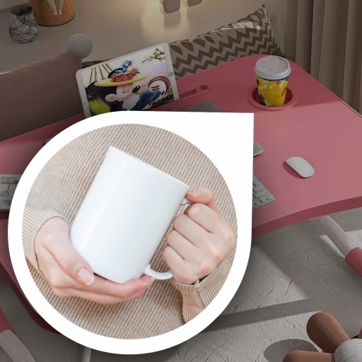 Idealny do pracy i zabawy w domu lub podczas podróży. Umożliwia komfortowe użytkowanie laptopa czy innego urządzenia w praktycznie każdych warunkach. Po złożeniu zajmuje niewiele miejsca, można łatwo go schować np. pod łóżko i mieć go zawsze pod ręką. Wyposażony w profilowane zagłębienie na tablet lub telefon oraz otwór na kubek. Można też przeciągnąć ładowarkę i ładować te urządzenia jednocześnie z nich korzystając. Miękkie, antypoślizgowe zabezpieczenia nóżek zwiększa stabilność i zabezpiecza stolik.