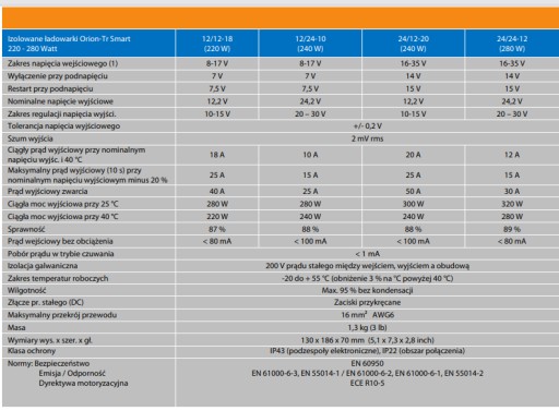 Ładowarki Orion-Tr Smart można używać w instalacjach 12V lub 24V, a nadaje się zarówno do akumulatorów ołowiowo-kwasowych, jak i litowych. Dostępne są modele o mocy nawet 400W, a celem zwiększenia mocy wyjściowej można równolegle łączyć ze sobą nieograniczoną ilość urządzeń.