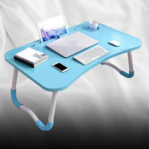 Idealny do pracy i zabawy w domu lub podczas podróży. Umożliwia komfortowe użytkowanie laptopa czy innego urządzenia w praktycznie każdych warunkach. Po złożeniu zajmuje niewiele miejsca, można łatwo go schować np. pod łóżko i mieć go zawsze pod ręką. Wyposażony w profilowane zagłębienie na tablet lub telefon oraz otwór na kubek. Można też przeciągnąć ładowarkę i ładować te urządzenia jednocześnie z nich korzystając. Miękkie, antypoślizgowe zabezpieczenia nóżek zwiększa stabilność i zabezpiecza stolik.