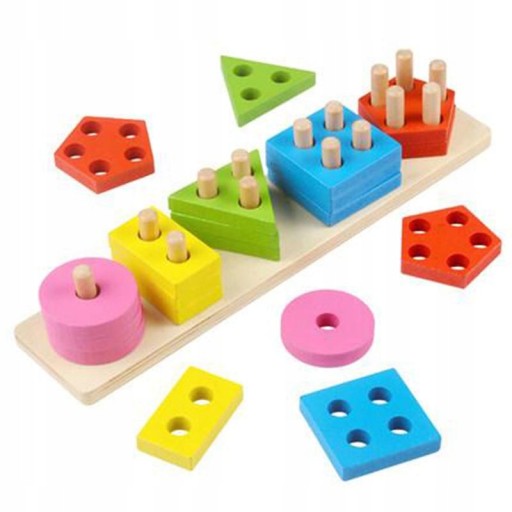 Drewniane Klocki Puzzle Montessori Edukacyjne Zabawki 5-filarowe