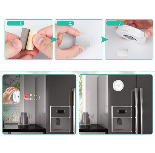 - Okrągły arkusz żelaza wewnątrz opakowania jest przyklejony do płaskiego miejsca, a arkusz magnetyczny jest wbudowany z tyłu lampki nocnej, którą można zaadsorbować bezpośrednio na powierzchni żelaza.