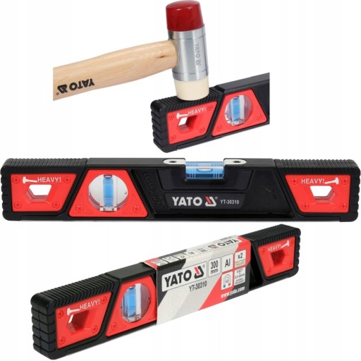 Wytrzymała, odporna na wstrząsy poziomnica aluminiowa YATO o długości 300 mm.