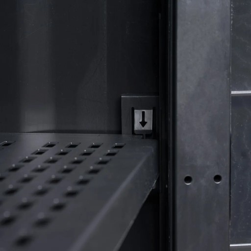 Szafa ze znakiem jakości TÜV-GS wykonana jest z mocnego, wytrzymałego polipropylenu (PP). Posiada wentylowaną półkę o regulowanej wysokości, dzięki czemu pomieści przedmioty o różnych gabarytach. Można ją zamknąć na kłódkę dla większego bezpieczeństwa (kłódka nie jest załączona).