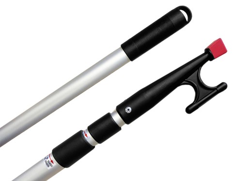 Bosak z regulacją długości, wykonany z aluminium. Zakończony grotem PCV z zastosowaną na końcu gumką, eliminującą ryzyko zarysowania laminatu. Gumowa rączka.