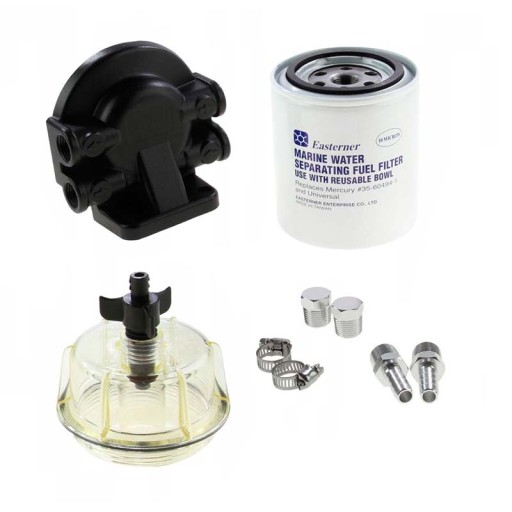 UNIWERSALNY FILTR PALIWA Z SEPARATOREM WODY I ODSTOJNIKIEM. Uniwersalny filtr paliwa z separatorem wody, do montażu pomiędzy zbiornikiem paliwa a silnikiem. Niezbędny element linii paliwowej zasilającej silniki zaburtowe oraz silniki stacjonarne z bezpośrednim wtryskiem paliwa (MPI, EFI, DFI, HPDI, E-TEC i inne). Dzięki niemu woda zawarta w paliwie jest odseparowana. Możemy kontrolować ilość wody dzięki przezroczystemu odstojnikowi. Filtr można stosować jako uniwersalny lub zamiennik oryginalnych filtrów Mercury Quicksilver 35-60494-1, 35-809097