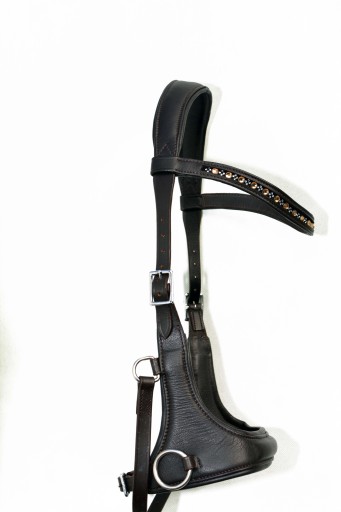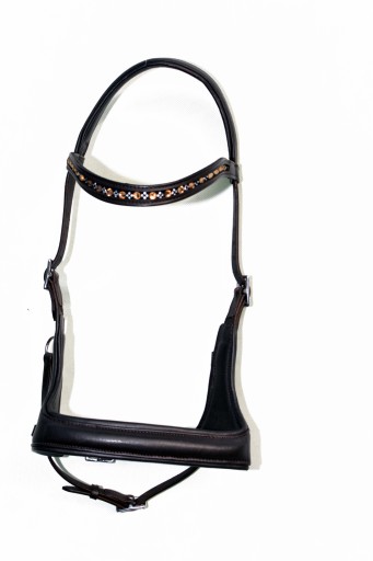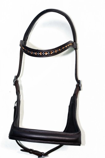 Ogłowie bezwędzidłowe roz. Full .Ogłowie wyprodukowane w zakładzie Rymarskim w Anglii .Wykonane z najwyższej jakości skóry Argentyńskiej bydlęcej bardzo miękkiej i miłej w dotyku , część potyliczna i naczółek szyty z bardzo miękkiej skóry ,aby zapobiec obtarciom .Ogłowie zapinane i regulowane jest na stabilne sprzączki , wykonane z bardzo dobrej nierdzewnej stali szlachetnej . Zapraszam do zakupu.
