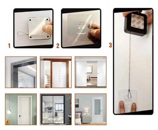 - Otwartość haczyków pozwala na łatwe odpinanie linki od drzwi aby móc zrezygnować z działania samozamykacza, np. gdy chcemy odkurzać.