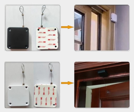 - Samozamykacz posiada otwory na wkręty oraz zamontowaną silną taśmę klejącą renomowanej marki 3M.