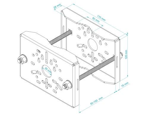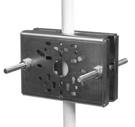 Możliwość montażu na słupach o średnicy od 30 do 105 mm, za pomocą dołączonych do zestawu prętów gwintowanych, podkładek i nakrętek.