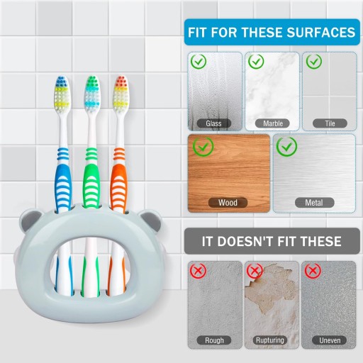 ✅ Gdzie można go zainstalować? Uchwyt na szczoteczkę do zębów ma przyssawkę, którą można odkleić i przykleić na wielu różnych powierzchniach, takich jak płytki ceramiczne, marmur, szkło, stal nierdzewna, drewno, metal lub plastik. Nie nadaje się do tapet, farb, tynków ściennych, chropowatych powierzchni i łatwo łuszczących się ścian.