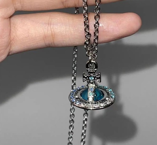 Duży Saturn, naszyjnik kolor Srebrny/Niebieski
