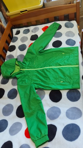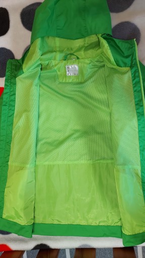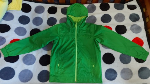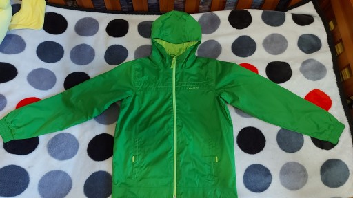 kurtka wiatrówka na wiosnę i lato, bez ocieplenia, podszyta tylko siatką, firmy Quechua z decathlonu, metka z rozmiarem wycięta ale będzie dobra na dziecko noszące 152/158, stan db. szerokość pod pachami 50cm, długość od ramienia do dołu przodu 62cm, długość rękawa od pachy 52