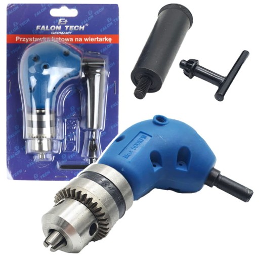 Przystawka kątowa 90° od firmy FALON TECH do wiertarek i wkrętarek. Niezbędne narzędzie, które umożliwia kręcenie, wkręcanie, wiercenie i dokręcanie pod kątem 90° w trudno dostępnych miejscach.
