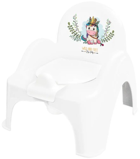 Nocnik posiada wysokie oparcie i antypoślizgowe nóżki dzięki czemu jest stabilny, bezpieczny i wygodny. Wykonany jest z trwałego i mocnego plastiku.