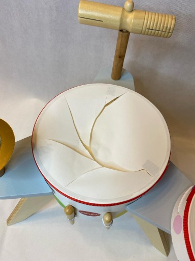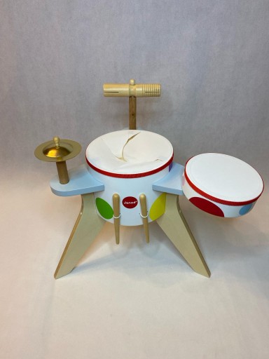 - CECHY: Zawiera bęben, tamburyn, talerz, girro i 2 pałeczki. Wymiary zabawki: Długość 46,6 cm x Szerokość 41,9 cm x Wysokość 43 cm. Zastosowany materiał(y): Drewno (sklejka i schima), metal, tworzywo sztuczne. Zalecany przedział wiekowy: od 3 lat do 6 lat.