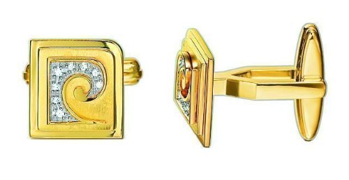 Piękne złote męskie spinki do mankietów wykonane ze srebra próby 925 z białą cyrkonią