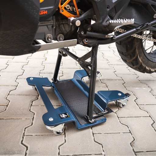 Przeznaczona do swobodnego przemieszczania motocykla (w dowolnym kierunku), pozwala na zaparkowanie motocykla w dowolnie wybranym miejscu. Pasuje do motocykli wyposażonych w stopkę centralną. Idealne rozwiązanie do garaży z ograniczoną ilością miejsca, wyposażona w 4 zestawy podwójnych, blokowanych kółek - skrętnych 360° . Dzięki kompaktowej konstrukcji nie zajmuje dużo miejsca podczas przechowywania.