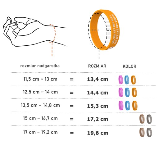 zmierz obwód nadgarsta i wybierz ROZMIAR opaski wg poniższej tabeli