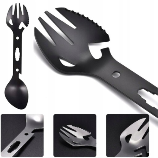 Łyżko-widelec to nie tylko uniwersalne sztućce, dzięki którym wygodnie zjesz każdy posiłek ale równie przydatne w wielu sytuacjach: otwieracz do butelek, klucz do nakrętek, otwieracz do puszek, skrobaczka do ryb a nawet harpun!