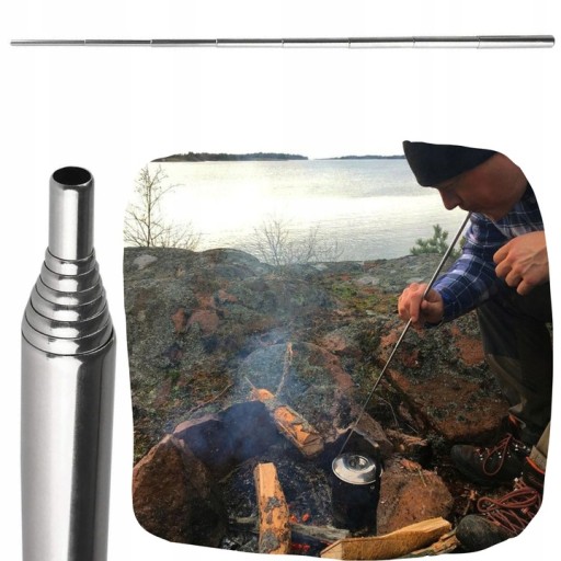 Niezastąpiona podczas rozpalania ognia składana, stalowa płomieniówka. Dzięki długości ponad 48 cm pozwala precyzyjnie podsycić nawet niewielki ogień.