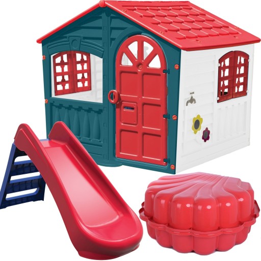 DOMEK OGRODOWY + ZJEŻDŻALNIA 130cm + PIASKOWNICA 2 szt
