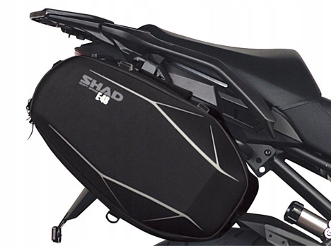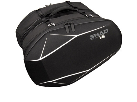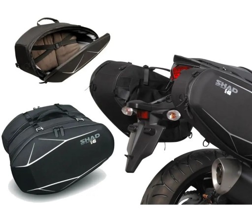 Sakwa SHAD to półsztywne torby z elementami odblaskowymi zwiększającymi bezpieczeństwo. Zostały wykonane z termoformowanego materiału EVA i poliestru, co gwarantuje długotrwałe użytkowanie. Ponadto opływowa budowa nie wpływa negatywnie na właściwości jezdne motocykla a nowoczesny design zapewnia bardzo dobre wrażenia wizualne. Sakwy mimo że są wykonane z materiału, zachowują się jak sztywne sakwy np. wykonane z plastiku.. Pojemność sakw jest regulowana od 40 do 52 L. Zamki zostały zabezpieczone przed przedostawaniem się wody do środka. Sakwy zostały wyposażone w odblaskowe elementy.