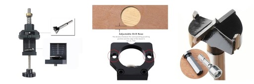 Łatwa regulacja, wystarczy poluzować śruby kluczem. Narzędzie do wiercenia w zawiasach jest wyposażone w 2 proste klucze. Głębokość otworu można regulować, dostosowując odległość między pierścieniem oporowym a tuleją wiertła w celu określenia głębokości otworu.