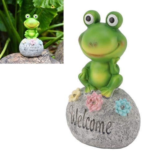 Posąg żaby z lampkami słonecznymi Żywica Wystrój ogrodu na zewnątrz Figurka żaby na patio Podwórko Trawnik Ozdoba basenowa Prezent na parapetówkę
