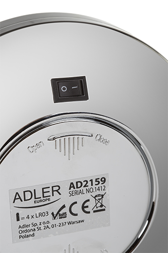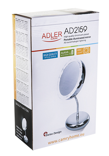 Lusterko z podświetleniem to urządzenie całkowicie zmieniające jakość domowych zabiegów kosmetycznych. Dzięki podświetleniu zasilanemu 4 bateriami AAA, skończy się problem z niedostatecznym oświetleniem pomieszczenia. Dodatkowo lusterko AD 2159 pozwala na 3-krotne powiększenie, co umożliwia wykonanie bardzo precyzyjnego makijażu. Lusterko sprawdza się nie tylko w domu, ale też w podróży, ponieważ jest lekkie i łatwe w przewożeniu.