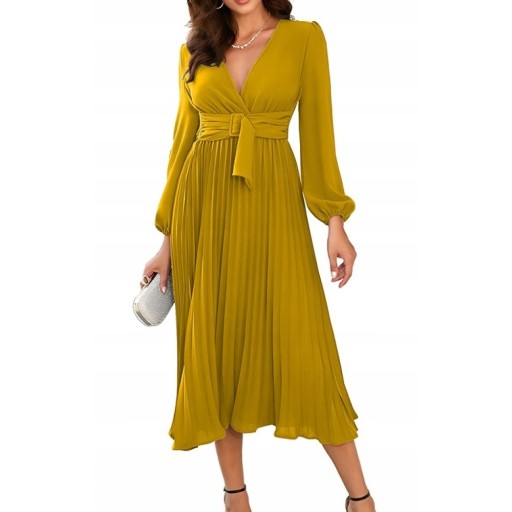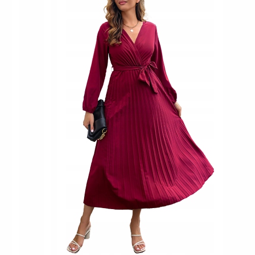 Женское модное элегантное длинное плиссированное платье с поясом 245935