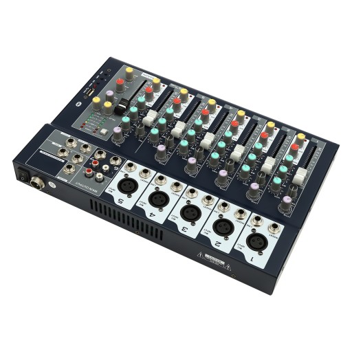 - 7-kanałowe wejście mikrofonu: Ma 5 mono mikrofonu/linii, zestaw wejściowych stereo, a także zrównoważone podnośnik wejściowy mikrofonu XLR XLR, umożliwiający osiągnięcie maszyn wielozadaniowych.