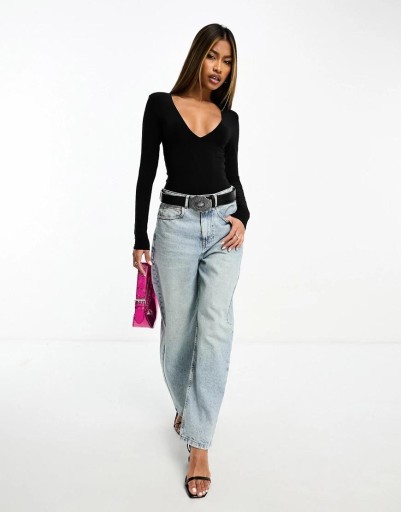 ЧЕРНОЕ ГЛАДКОЕ БОДИ С ДЛИННЫМ РУКАВОМ И V-образным ВЫРЕЗОМ NG9 NG7__L