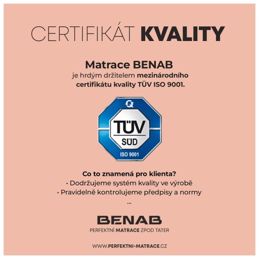 Materace Benab są na rynku słowackim i czeskim od 1998 roku, kiedy zakład pod Tatrami rozpoczął produkcję idealnych materacy dla gospodarstw domowych, szpitali, domów dla seniorów i obiektów hotelowych.