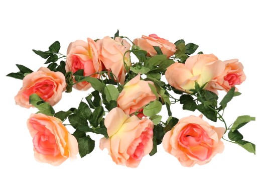 Ta urocza girlanda róż to doskonała ozdoba, która doda uroku i elegancji Twojemu domowi. Kwiaty zostały starannie wykonane, co sprawia, że wyglądają niemal jak żywe. Ich gęsta struktura i przyjemny w dotyku materiał, dodają im jeszcze większego uroku.