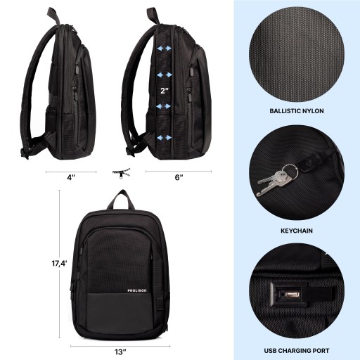 PROLISOK Тонкий и расширяемый черный рюкзак для ноутбука 15,6–16 дюймов
