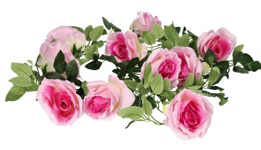 Ta urocza girlanda róż to doskonała ozdoba, która doda uroku i elegancji Twojemu domowi. Kwiaty zostały starannie wykonane, co sprawia, że wyglądają niemal jak żywe. Ich gęsta struktura i przyjemny w dotyku materiał, dodają im jeszcze większego uroku.